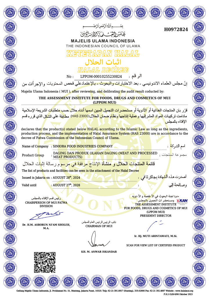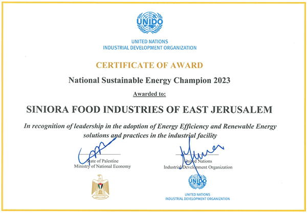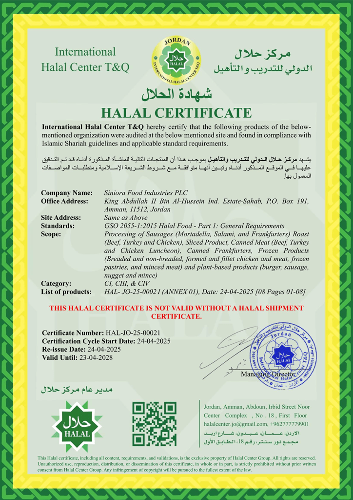 Finally, the factory in Palestine holds the Palestinian Standard Certificate for cold cut and canned meats. Siniora constantly works to not only maintain these certifications, but exceed their requirements for the benefit of the company and its customers.